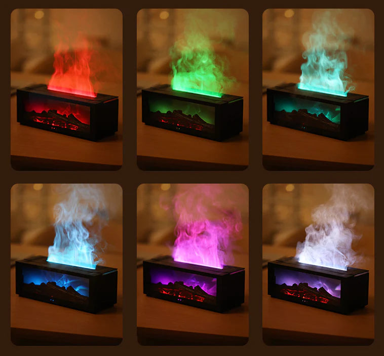 Transform your home into a tranquil sanctuary with this innovative humidifier that combines the warm glow of a flame and refreshing cool mist, providing a soothing atmosphere for relaxation and well-being.